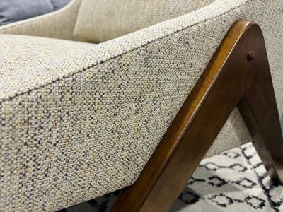 [This review was collected as part of a promotion.] This accent chair is such a beautiful contemporary piece. It was confusing at first to put it together, but once you got it, it’s very easy. The material from the cushions and the wooden legs are very well-made and high quality. It is a big chair that might take up a lot of space in your house, but it is so worth it. I would even consider not pairing this accent chair with a couch but with just a wooden table only, so it will be a star piece for the living room and not completing too much with other furniture pieces in the house. I am happy to own this chair as it is also comfortable to sit on and relax. Love love love!