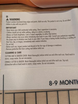 - Solid Start: Baby mealtime prep kit includes large 11x14 prep mat, a grater, and a crinkle cutter