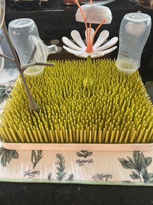 [This review was collected as part of a promotion.] I love this drying rack for my baby's bottles, dishes, teethers, etc. The Twig and stem are especially great to hang his bottle rings and pacifiers from. The green lawn allows for literally everything to stay in play while drying. This drying rack is a MUST for any parent!