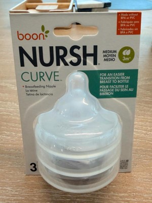 [This review was collected as part of a promotion.] The boon Nursh Curve bottle system is wonderful and these nipples are no exception! I love how they mimic an actual nipple and are seemingly very easy to transition between for my baby who’s both breast and bottle fed. They’re incredibly easy to clean and assemble/disassemble. The medium flow nipples have worked well for us even past 3 months. Overall, I’m a big fan of the Nursh line and these nipples are no exception!
