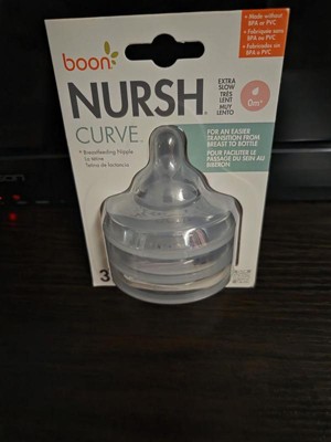 [This review was collected as part of a promotion.] The boon Nursh Curve nipples are wonderful! I love how they mimic an actual nipple and are seemingly very easy to transition between for my baby who’s both breast and bottle fed. They’re incredibly easy to clean and assemble/disassemble. My only gripe is that they do leak if the inner silicon chamber of the bottle and the nipple aren’t properly secured, so you do have to be mindful of that! The slow flow nipples were almost immediately too slow for my little one, and we upgraded to the next size up. Overall, I’m a big fan of the Nursh line and these nipples are no exception!