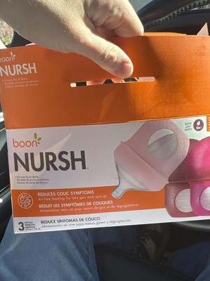 KICK COLIC TO THE CURB! Boon Nursh bottles feature a revolutionary air-free feeding design with a 100% silicone pouch that collapses as your little one drinks, helping prevent colic symptoms like gas and spit up. Other baby bottles use vents or valves that introduce air into milk to help it flow, NURSH doesn’t need any of that. Our silicone pouch collapses as baby drinks, mimicking breast feeding with no added air. The silicone material is also safe for boiling, sterilizing, and freezing, making it easy to get ready for each feeding session for your little one. As a bonus, no vents or valves make it a snap to clean with a dishwasher-safe design and assembly that takes a matter of seconds. After all, who wants to prepare a complicated bottle at 2 am? Nursh’s optimal bottle nipple shape and length are easy for your baby to latch on to Separating the pouch and the plastic shell in Nursh's patented design ensures your baby's milk never touches plastic, only food-safe silicone. Each Nursh bottle is BPA and PVC free.