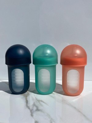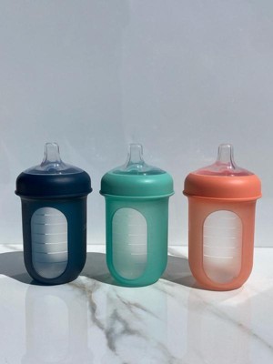 The bottles are modern in color and design, nipples