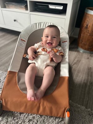- Sleek Baby Bouncer: Gives baby a secure, comfy and stylish seat with a 3-point harness and breathable fabrics