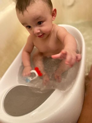 [This review was collected as part of a promotion.] I recently tried the Boon Soak Three-Stage Tub for my nine month-old baby, and I couldn't be happier with my decision. This tub has revolutionized our bath time routine, providing safety, comfort, and convenience in one sleek design. First and foremost, the adjustable bump feature is a nice feature. It perfectly cradles my baby's bottom, ensuring she sits comfortably and securely without any discomfort. Gone are the days of worrying about her wobbling or falling backward – this tub keeps her stable and supported throughout her bath. One of my favorite features is the temperature gauge. It takes the guesswork out of ensuring the water is just right for my little one. Now, I can confidently enjoy bath time knowing that the water is at the perfect temperature for her delicate skin. Additionally, the design of the tub allows me to have my hands free to interact and play with my baby. I no longer have to constantly worry about holding her in place – the tub does the job for me, giving me peace of mind and allowing for precious bonding time. Overall, the Boon Soak Three-Stage Tub has exceeded my expectations in every way. It's safe, comfortable, and convenient, making bath time an enjoyable experience for both me and my baby. I highly recommend it to any parent looking for the perfect solution for their little one's bath time needs.