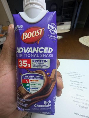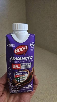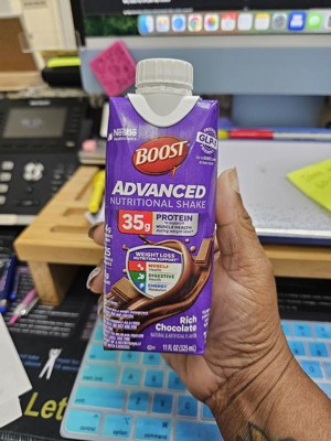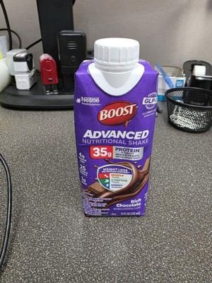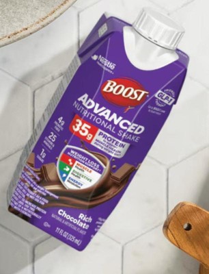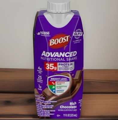 BOOST Advanced Nutritional Protein Shake is carefully designed by experts to support nutritional needs during weight loss^, including those on GLP-1s, dieting, or exercising. Help nourish your body with 35g high quality protein to help preserve muscle, 4g prebiotic fiber for digestive health, and 8 essential B vitamins to support energy metabolism. Whether you’re looking for nutritional support while on a weight management journey, or to fuel an active lifestyle, BOOST Advanced Nutritional Protein Shake is formulated with essential nutrients to help advance your goals. Available in convenient, ready-to-drink cartons. These nutritional shakes are available in both Rich Chocolate and Very Vanilla flavors and are Kosher and Gluten Free.