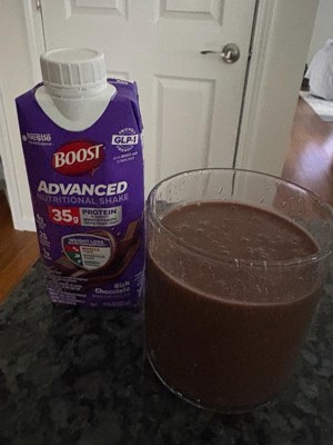 [This review was collected as part of a promotion.] Boost Advanced Nutritional Drink Chocolate is very tasty. It has a thick texture, tastes rich and I like the chocolate flavor. It is full of ingredients that are great for a snack or a meal.