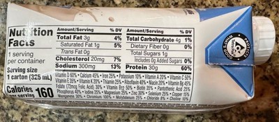 - Nutrition shakes with 30 g of high quality protein, 1 g sugars, and 25 vitamins and minerals per carton