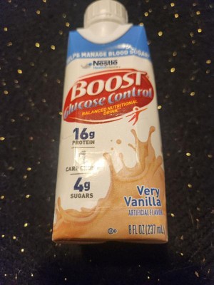 - Six 8 fl oz cartons of BOOST Glucose Control Very Vanilla Nutritional Drink Nutrition shakes with a delicious vanilla taste you’ll love