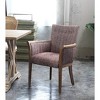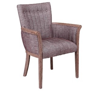 At the head of the dining table or in a corner of your living room, Burnham Home’s Claire Arm Chair shines. This transitional style chair is constructed with a natural ash wood frame. The seat and back are lightly padded and then upholstered in red-brown linen upholstery. Vertical channel tufting and button tufting round out the look. Protective glides on the base of each leg guard against damage and scratches to your hardwood floors.