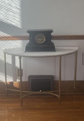 The Bordeaux Console Table transforms your living room with its sophisticated traditional style. Flaunting a high-class look, this round end table showcases a white marble table top with beautifully coordinating gold metal legs. Slip this elegant end table into your living room or home office to bring a glamorous allure to your decor. Assembly is required.
