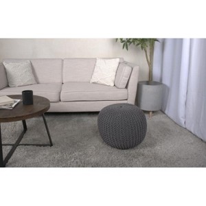 Bordeaux Knitted Cotton Round Pouf, Gray