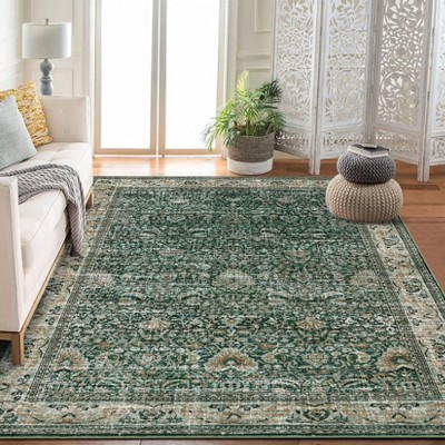 Bordered Area Rugs for Living Room, Modern Machine Washable Non Slip Low Pile Rug for Dining Room Home Office