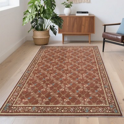Bordered Easy Jute Rug 5x7 Modern Geometric Bedroom Carpet, Stain-Resistant Low Pile Floor Mats, Machine Washable Indoor Outdoor Rug