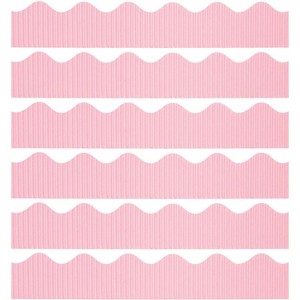 Bordette® Decorative Border, Pink, 2-1/4" x 50', 6 Rolls | Bordette® is the original, pre-scalloped, fade-resistant decorative border. The sturdy corrugate provides a unique 3-dimensional appearance on any flat surface. It bends, molds, turns and twists to create unique layered designs. Packaged in a perforated roll, Bordette is easy to separate. It's easy to mix and match colors to create the perfect display. One 50' roll of Bordette will completely edge two 8' x 4' bulletin boards. Recyclable. Each roll includes 2.25" x 50'. Sold as a pack of 6 rolls.