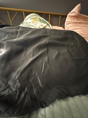 [This review was collected as part of a promotion.] This is a lovely pillow case. It's smooth silk, which helps my hair stay less frizzy and my face stick less on my pillow. The color is between a gray and a black and perfect for a bed with gray, blue or green. Seems like it's very high quality and washed fine in the washer.