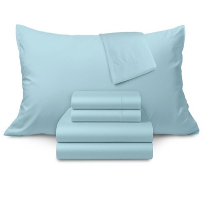 Borghese Roma 4pc Queen 400 Thread Count Percale CottonSheet Set Light Blue