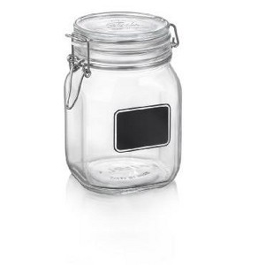 Bormioli Rocco Fido Square Clear Jar with Chalkboard, 33-3/4-Ounce