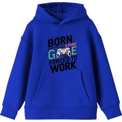 "Born To Game, Forced To Work" Youth Royal Blue Long Sleeve Hoodie-XS