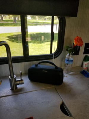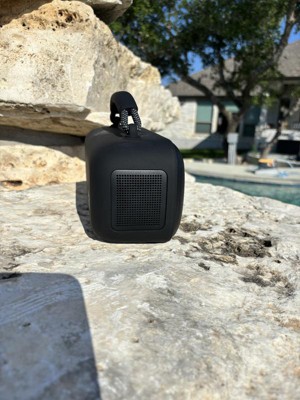 Very impressed with this speaker overall! You get what you pay for. Highlights: quick & immediate connection via Bluetooth, no loud “connection” sound like cheaper versions, size is just right - not too big or too small (see photo next to my cup for scale), sound quality is excellent as expected from Bose. I haven’t fully tested the water resistance but have peace of mind knowing we can use it near the pool. The texture silicone coating actually is nice too as it prevents it from sliding and is easy to grab. Also love the soft handle. We’ll be using this by the pool all summer!