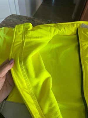 [This review was collected as part of a promotion.] Nice medium weight high vis jacket. I haven’t worn in the rain yet but I like the weight of it. The inside is fleeced so it feels nice. It is true to size and a nice length.