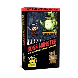 Boss Monster is the best-selling standalone card game that challenges players to become the ultimate villain by creating the deadliest dungeon! With over a million copies sold, this game is sure to be a hit at any table.Celebrate a decade of Boss Monster with the special 10th Anniversary Edition! Lure heroes to your dungeon with all new room cards and four new bosses. It’s been fine-tuned to be the perfect edition to introduce new players to the game.Thwart your opponents plans or buff your boss up with new spell cards! A modernized rulebook and quick start guide in this edition helps new and seasoned players alike.Do you have what it takes to be the baddest Boss in town, or will these puny heroes take your treasures?Find out in the all-new, special edition!