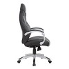 This hinged arm executive chair is beautifully upholstered in black and gray Caressoft upholstery for the kind of comfort and durability required for a long day at the office. It features a designer stitched back cushion and pivoting hinge arms that allow the seat and back to move independently in tandem with the 2-to-1 synchro tilt mechanism and adjustable tilt tension control. The chair’s seat tilt allows it to be locked in any position within the tilt range for a truly personalized seating experience.