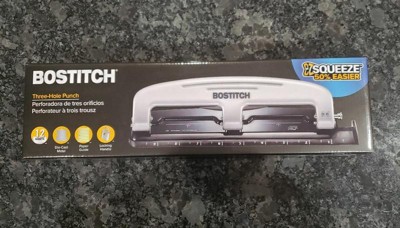 [This review was collected as part of a promotion.] I received this item for free from Influenster for my honest opinion. The Bostitch 3 hole punch is an easy to use product. It boasts a 50% easier to push mechanism and that is definitely true. I can do multiple pages without any issues. I highly recommend this 3 hole punch.