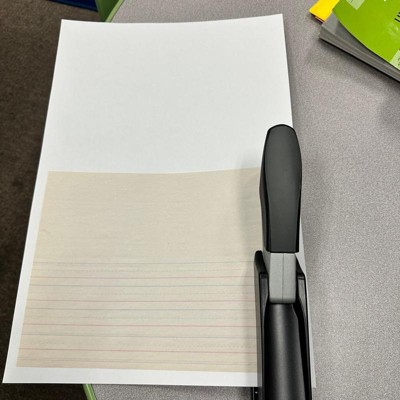 [This review was collected as part of a promotion.] Before I begin this review I am obligated to inform you that this review is "Incentivized" I received these products in exchange for my most honest review: If this isn’t the coolest mom/ teacher/ student gadget…..then …….I don’t know….. lol I mean seriously though! It gets through 25 pages with ease! No hassle what so ever! It has an adjustable lever to keep your staples perfectly aligned and exactly where you want them, it’s easy to use and just to help you understand measurements here I placed a standard 8.5x11 sheet of paper into it! This is really cool