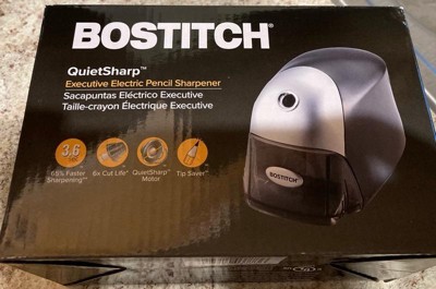[This review was collected as part of a promotion.] The Bostitch Office quiet sharp heavy duty electric pencil sharpener live up to all that is advertised. For me and us using it in our home is the tidiness of my kids not having to used a handheld pencil sharpener over the trash. Half the time they don’t get all the pencil flakes in to the trash can. The Bostitch allows them independence when sharpening and less clean up for mom.