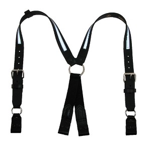 These fireman suspenders attach to the interior of the turnout pants with the loop ends that snap on to itself. The reflective strip that goes down the middle of the front straps are for extra safety when on the job. Easily adjust the length of the suspenders with the heavy duty metal buckles in the front. Made of Leather