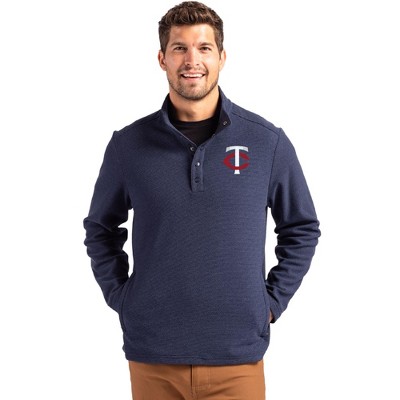 Boston Red Sox Cutter & Buck Hunts Point Eco Textured Fleece Recycled Mens Snap Pullover - Navy Blue - 2X Large