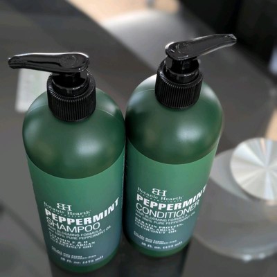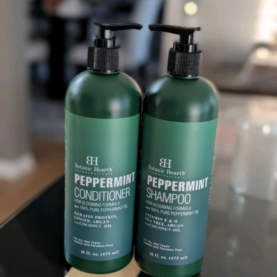 Botanic Hearth Peppermint Shampoo and Conditioner Set, made with 100% pure peppermint oil, is sulfate and paraben-free, ensuring a gentle yet effective cleanse. The formula, enriched with Vitamin E & H, Tea Tree, Argan, and Coconut oils, promotes visibly fuller, healthier hair. Peppermint oil refreshes the scalp with a cooling, invigorating sensation, leaving hair feeling clean and revitalized. Cruelty-free and made in the USA, this set is safe and effective.