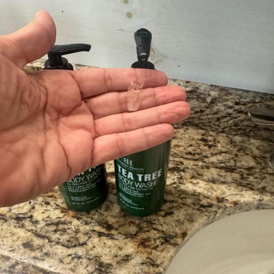 [This review was collected as part of a promotion.] This tea tree two pack bodywash smells great, but I was really interested in trying a tea tree body wash because my daughter is prone to itchy skin and I have read that tea tree oil is good for inflamed skin. What I didn't realize is that this is not pure tea tree oil, and actually the peppermint oil smell really takes over the product so it feels more peppermint than tea tree. But. it is very nice body wash and I like that I can keep one in my main bath and one in the spare bathroom.