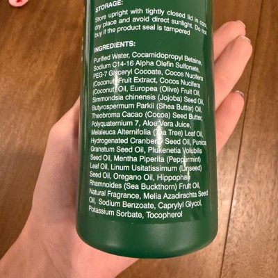 aqua, decyl glucoside, cocamidopropyl betaine, myristic acid, lauric acid, glycerin, propylene glycol, potassium hydroxide, tea tree (melaleuca alternifolia) leaf oil, hydroxy propyl methyl cellulose, phenoxyethanol & ethylhexylglycerin, coconut (cocos nucifera)oil, olive (olea europaea) fruit oil, peppermint (mentha piperita) oil,sea buckthorn(hippophae rhamnoides) oil' '