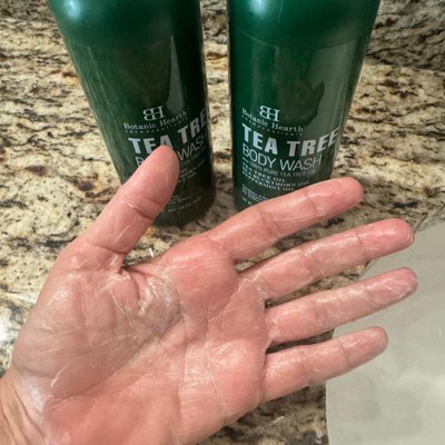 [This review was collected as part of a promotion.] I purchased this tea tree body wash by botanic hearth to help with dry skin. It has a very nice calming smell to it. Doesn’t smell chemically at all. These two bottles are a great value for the size and quality. You definitely don’t need a lot - A little goes a long way. It lathers up quickly and well. The soap is clear so you know there’s no added dyes or junk. You don’t feel dry getting out of the shower before lotion.