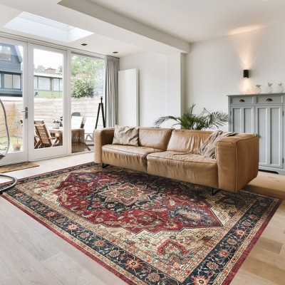 Botanical 9x13 Machine Washable Rug with Non-Slip Backing Low Pile Folding Soft Touch Floor Cover For Living Room Bedroom Dining Room Playroom Office