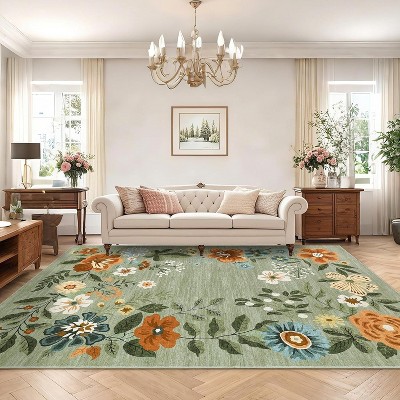 This washable area rug features an elegant botanical floral pattern, adding a touch of farmhouse charm to your living room, bedroom, nursery, or office—perfect as an accent rug that elevates any space