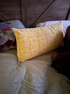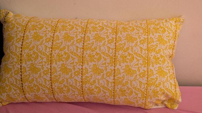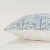This cozy cottage inspired accent pillow cover in soft hues of light blue and white features a playful floral design that make it a standout piece. Crafted using an authentic block printing technique, each pillow cover showcases the intricate patterns that have been flawlessly printed onto the soft cotton fabric. The knife-edge pillow cover is adorned with machine-embroidered accents that add subtle sheen and texture to this delicate design. The coordinating solid back comes with a hidden zipper closure, ensuring that the pillow cover stays in place while providing easy filling and cleaning. The color palette of this beautiful pillow cover is dominated by varying shades of blue, evoking a sense of serenity and calmness to create a tranquil haven in any interior space. Experience the magic of these dancing botanicals and subtle embroidery accents that make this pillow cover truly unique.