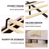 - BED FRAME WITH HIDDEN STORAGE DRAWER: Maximize space without sacrificing style. A silent-glide storage drawer at the footboard offers ample room for toys, linens, or seasonal items, while the EVA-free barrier keeps it securely in place. Elevated 6 inches above the floor, this bed frame promotes airflow for a fresher mattress and provides easy access for cleaning or additional under-bed storage.
