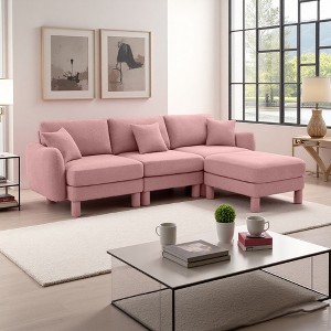 Boucle Convertible L-Shaped Sectional Sofa with Shell Armrests & Ottoman