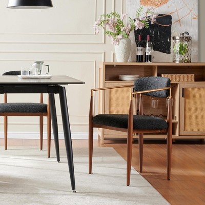 Boucle Dining Chairs Set of 2, Modern Armchairs with Wood Grain Metal Legs for Kitchen, Living Room, Restaurant, Cafe - Morden Fort