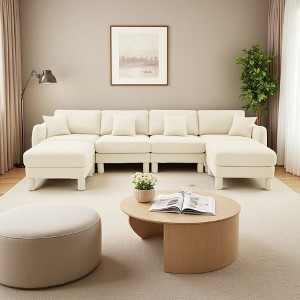 Boucle U-Shaped 4-Seater Sectional Sofa with Shell Armrests & 2 Ottomans
