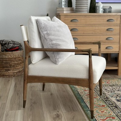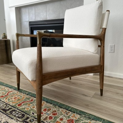 Boucle Upholstered Accent Arm Chair with Brass Details - Natural/Aged Oak - Hearth & Hand™ with Magnolia: Farmhouse Style, Target Exclusive