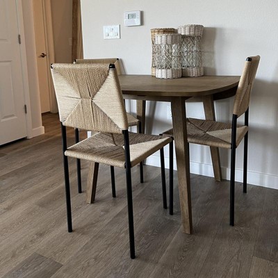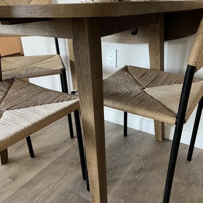 This is honestly a great table for the price. I looked for a couple months for the perfect table at an affordable price point for this awkward little wall in my apartment, the only place I could really fit a dining table. Finally found this and took a chance on it. It was actually better than expected. The color and texture is great, kind of that rustic weathered look that’s in right now. It’s quite heavy and sturdy. Also, it was easy to put together. The fold-down sides are perfect for having it up against the wall. The only thing I would say is the way the legs are set my chairs can’t be pushed in all at once. If you have super wide dining chairs (I tried some slipcovered ones that didn’t work at all) they would be sticking out pretty far. Overall, I’m thrilled with it. Target had the best price I found for it as well.
