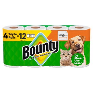 • Pack contains 4 Triple Rolls of white Bounty Full Sheet Paper Towels