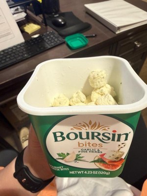 [This review was collected as part of a promotion.] Thank you, Influenster, for the complimentary Boursin Bites Garlic & Fine Herbs Bites in exchange for my honest feedback. I’ve been a long-time huge fan of Boursin. The serving size was the perfect in-office snack for me as I had back-to-back interviews today and couldn’t get to an actual meal until after 3pm. The product was appeared just as expected, small and irresistible. Very fresh. Just the right amount of firmness. I highly recommend. I did bring ground turkey meatloaf to pair this with, but I was too hungry to wait for the meatloaf.