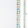• Colourful “Happy Birthday” prints on a clean white background.