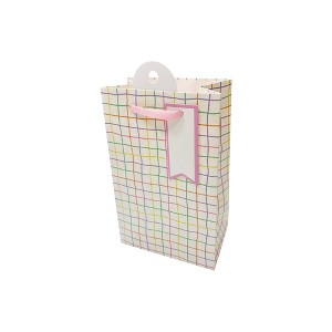 Brighten someone's day with this fun and stylish colorful grid gift bag! A vibrant grid pattern bursting with cheerful colors, this bag is designed to bring joy to any occasion. The iridescent glitter touch adds a hint of sparkle for the perfect finishing touch.