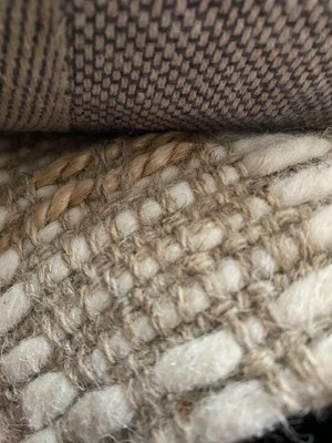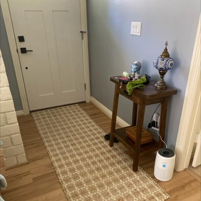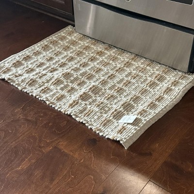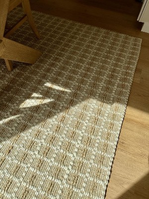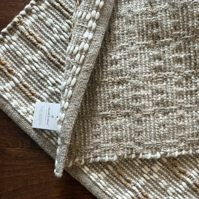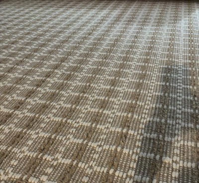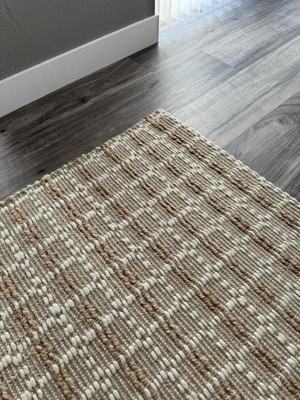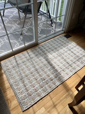 This thick sisal/jute rug is great if you are trying to find a rug that has a natural vibe with a trendy twist—l love the subtle plaid pattern with white and tan fibers. It’s just the right size for an entry or under your washer and dryer. Thick, great quality.